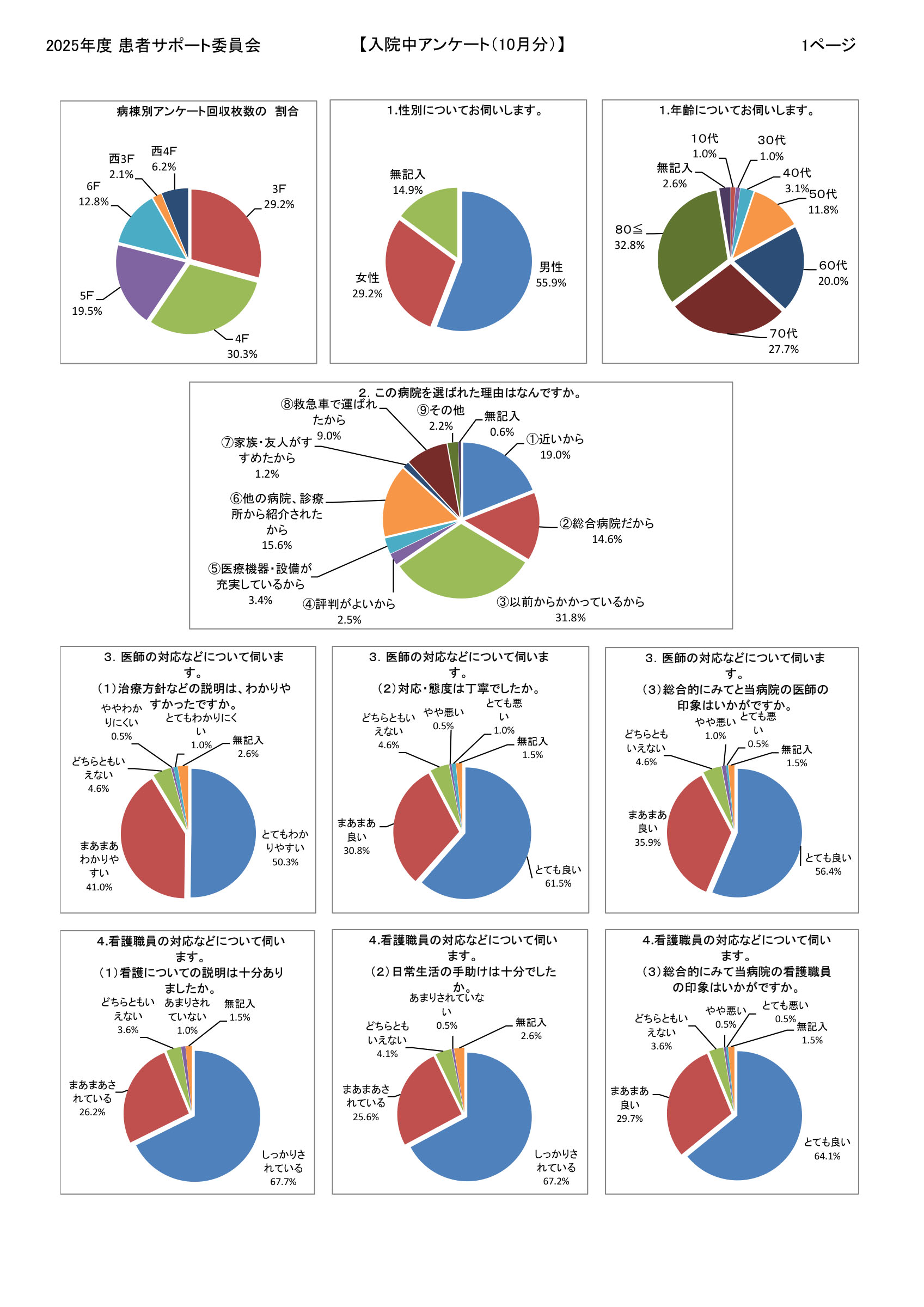 2025年度 患者サポート委員会 10月分 入院アンケート集計結果