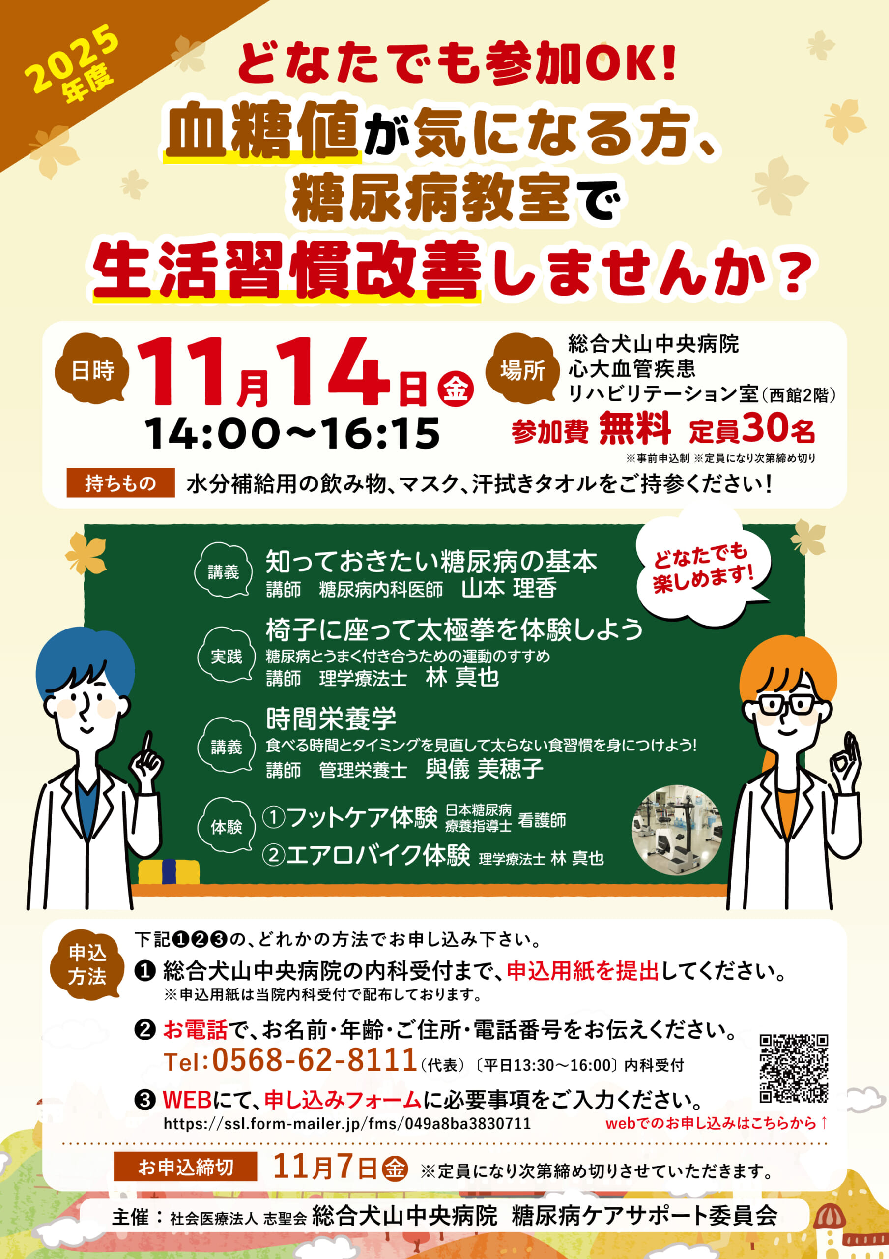 【11/14金・13:00~】ちょっと特別な糖尿病教室開催のご案内