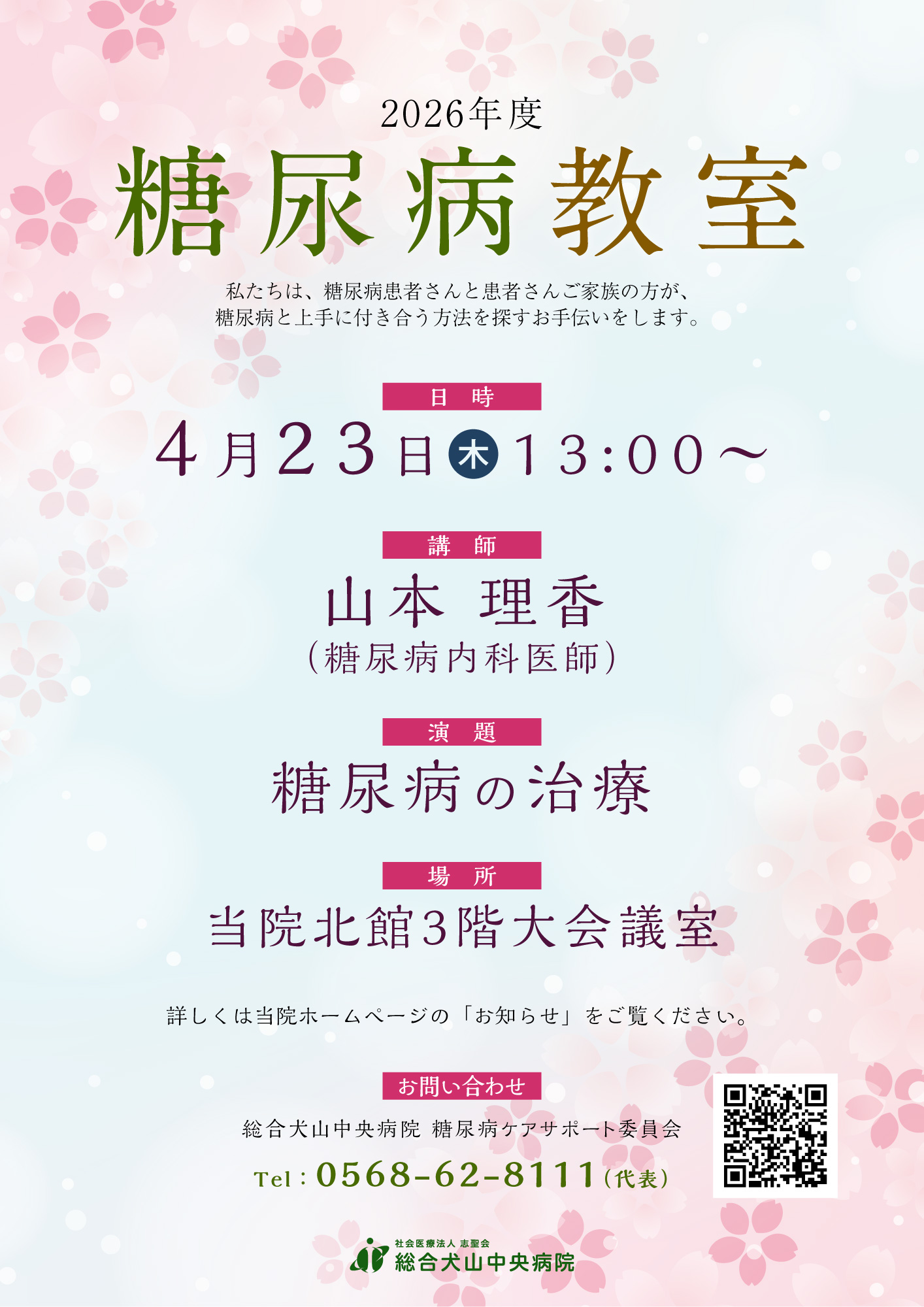 【4/23木・13:00~】糖尿病教室開催のご案内 『糖尿病の治療』